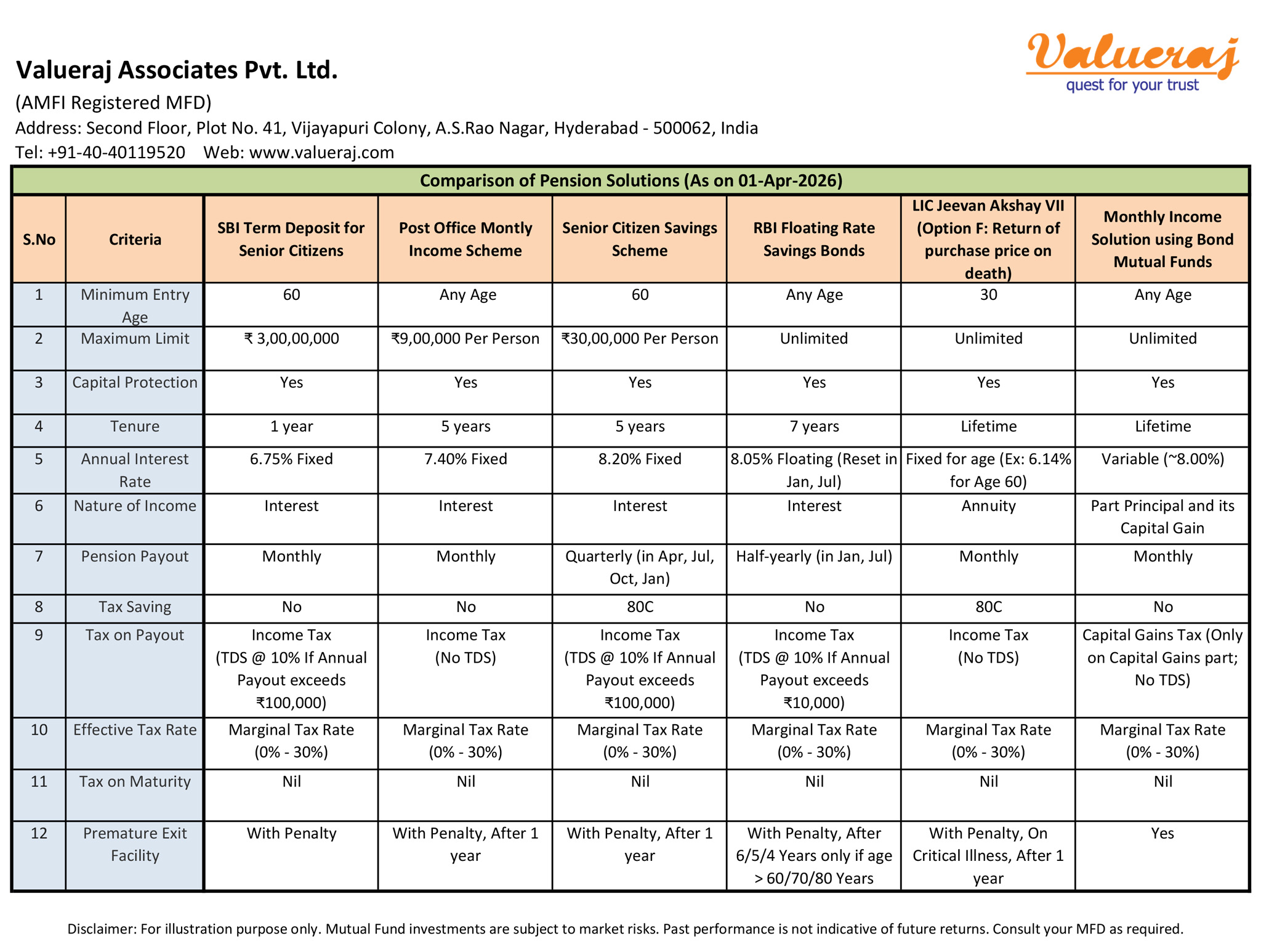 Find below various pension solutions available vis-a-vis solution with bond mutual funds.