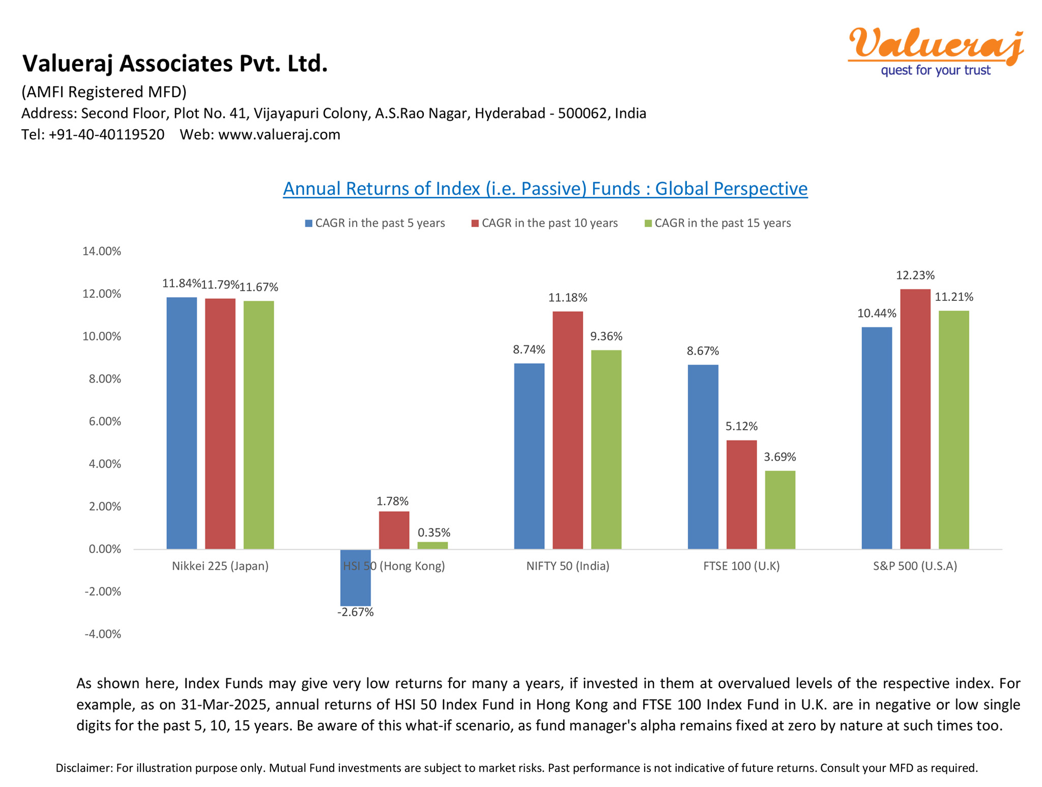 Global investing would no doubt gives you the opportunity to invest into other stock markets. However, this comes with risks related to regulatory changes, currency fluctuation and political instability in the respective countries. Moreover, there are instances of certain markets giving very low returns for prolonged periods of time.