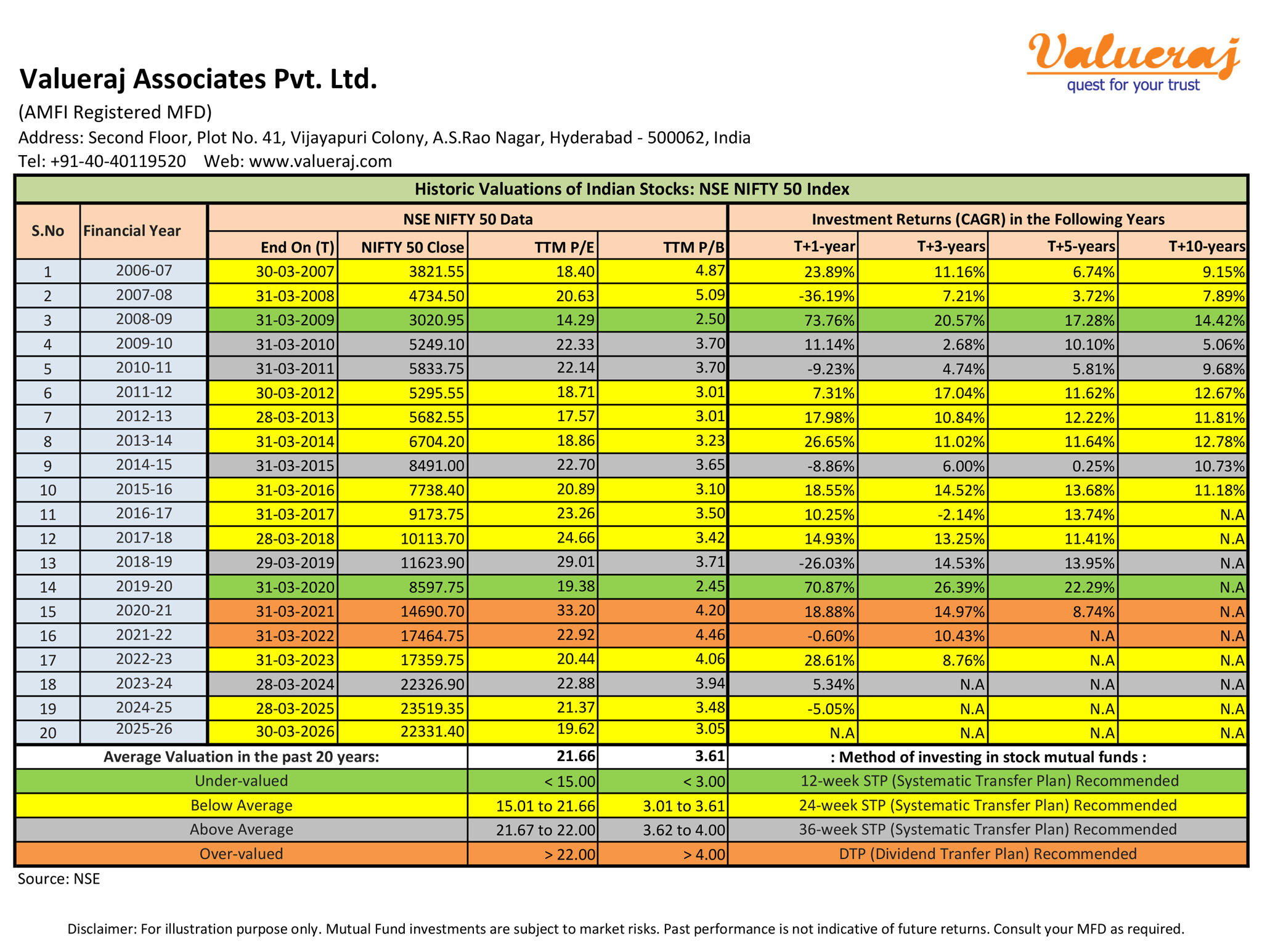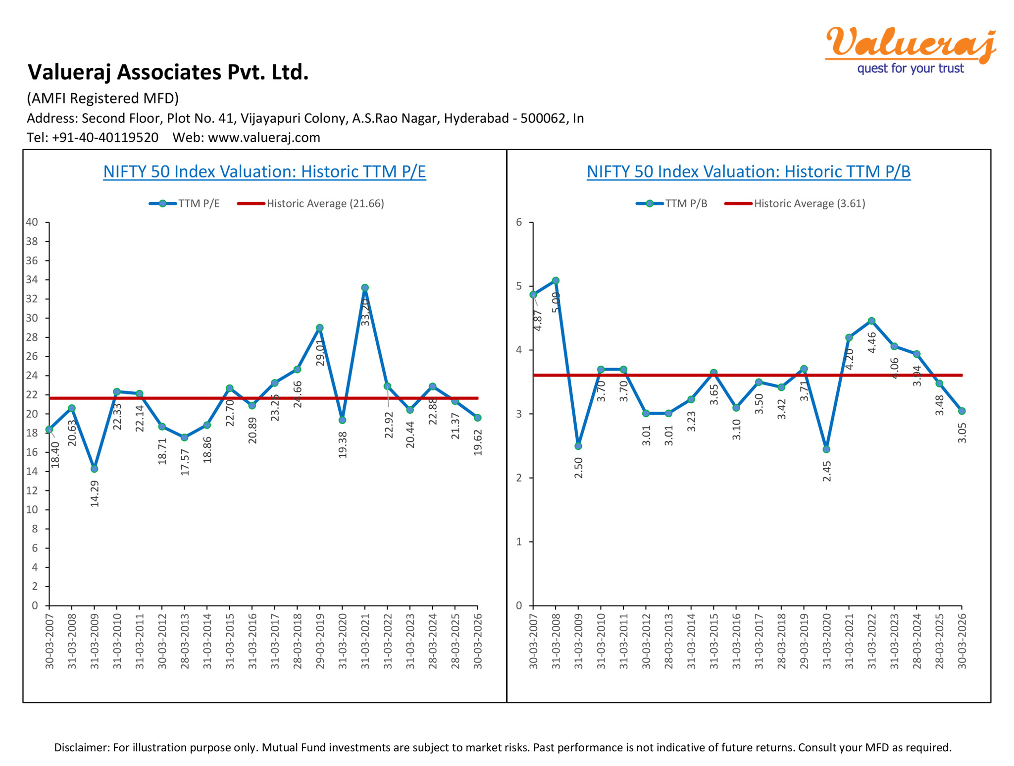 Find below our analysis on historic P/E and P/B values of Nifty50 index over past 20 years.