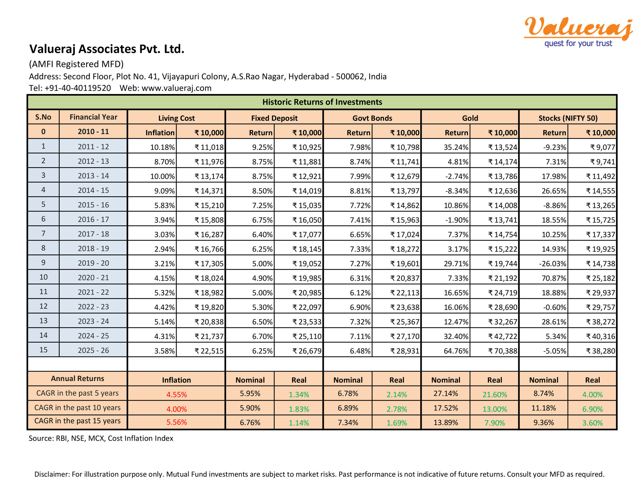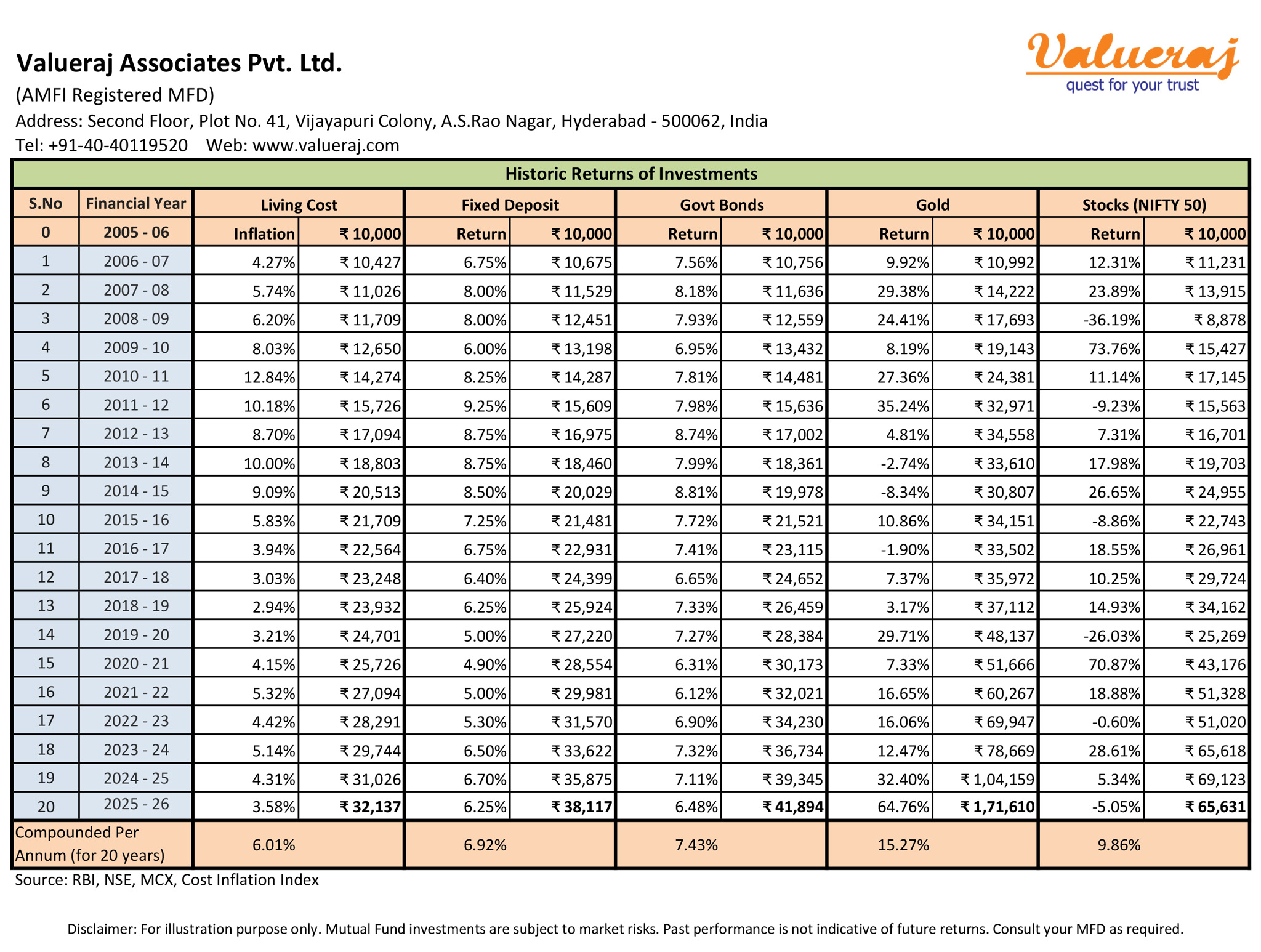 Find below our analysis on historic returns of various asset classes in India over last 20 years.