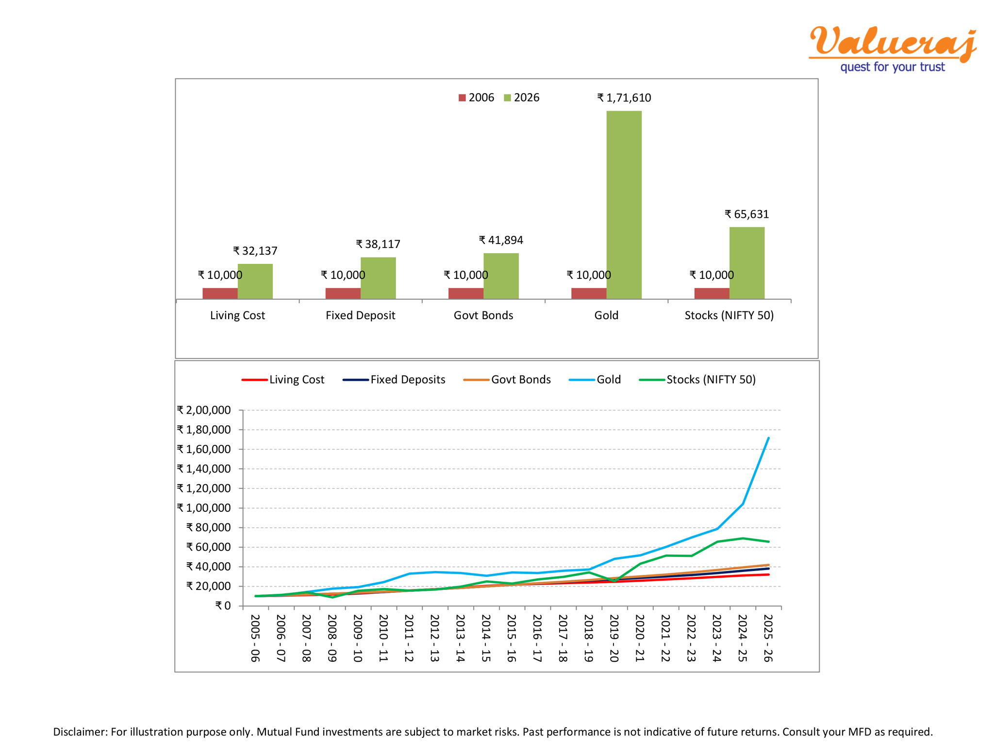 As you know, Stocks and Gold give higher nominal returns as compared to FDs and Bonds. Likewise, after adjusting for inflation, Stocks and Gold give higher real returns as compared to FDs and Bonds.