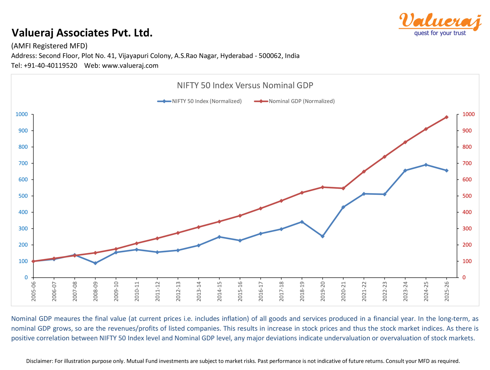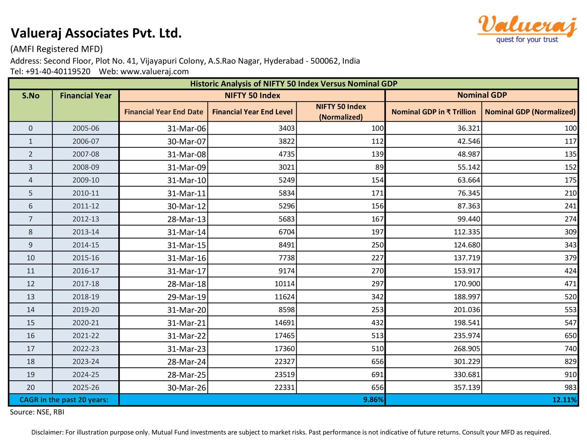 Find below our analysis on historic growth of India’s nominal GDP and historic returns of Nifty50 index in the past 20 years.