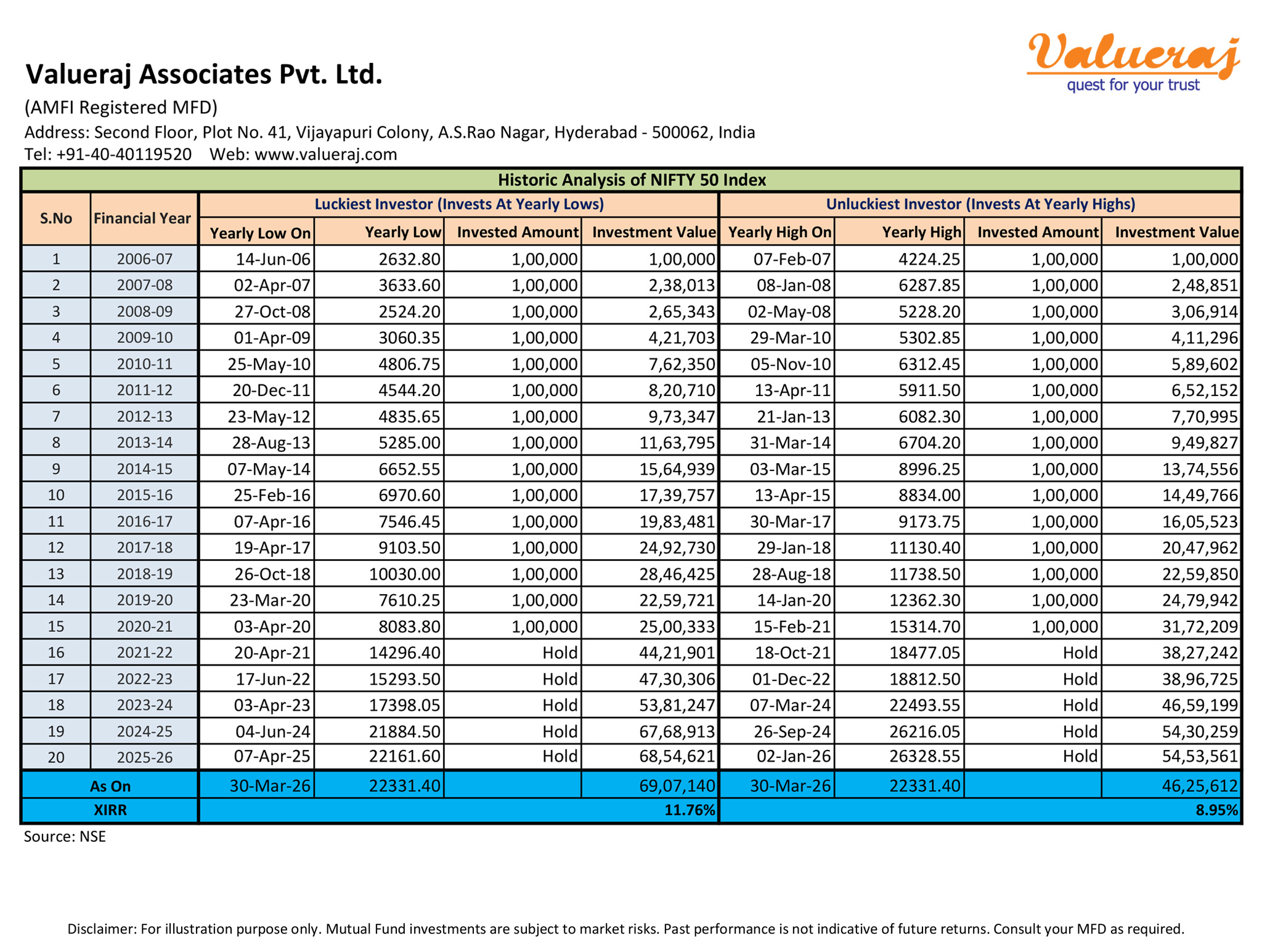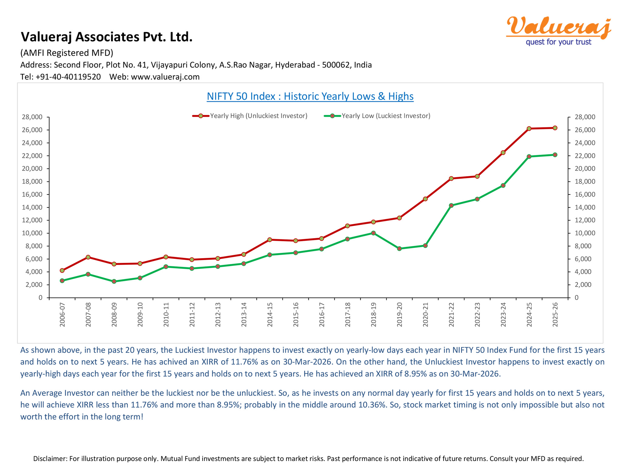 Find below our analysis on historic returns of the luckiest investor and unluckiest investor in the past 20 years wherein they invested yearly for the first 15 years and then just held on for the next 5 years.