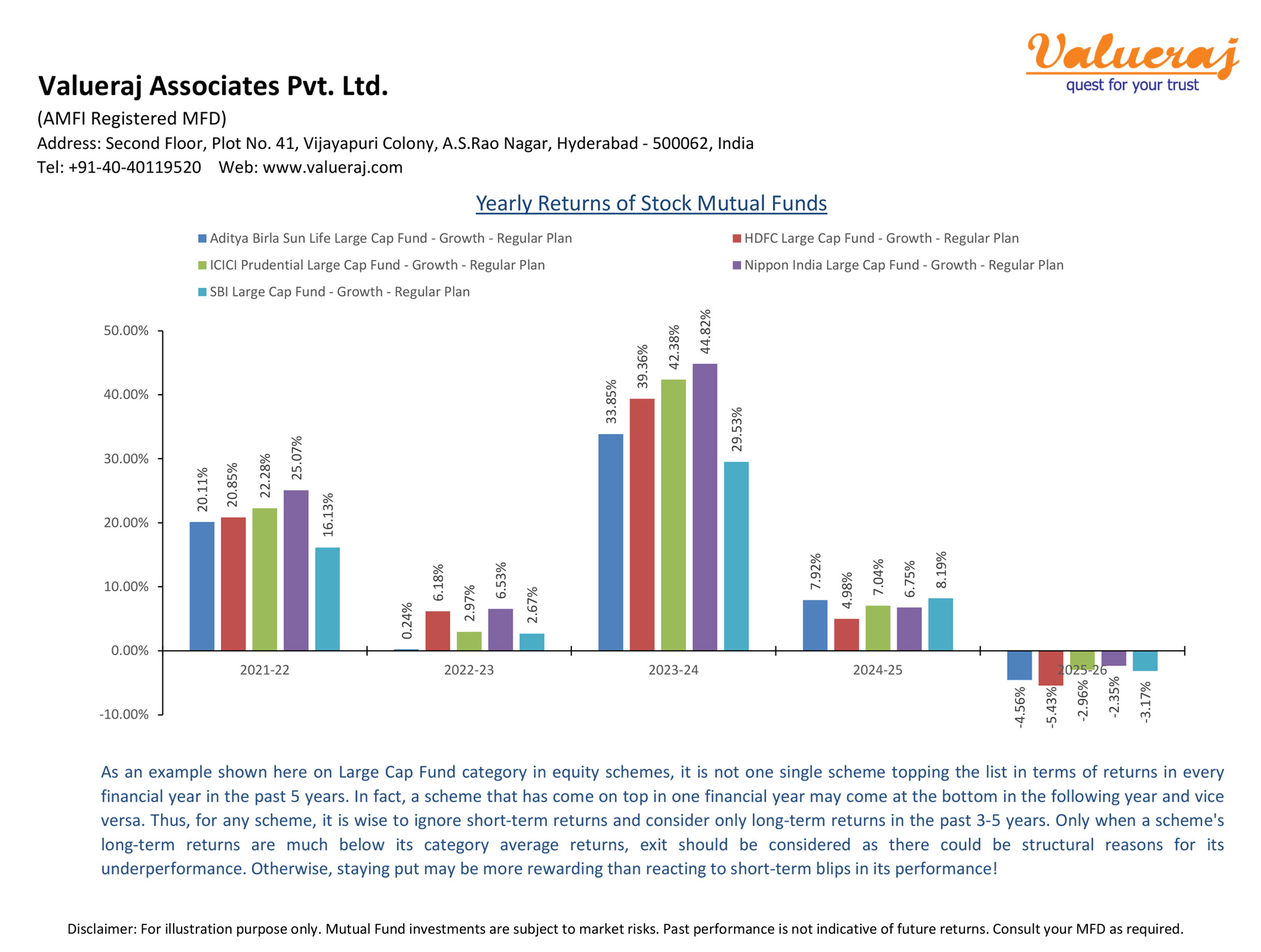 As stock markets go through ups and downs, stock mutual funds too go through volatile returns in the short-term. However, you should ignore such cyclical blips and stay invested for long-term to clinch superior returns. The reasons for any exit should be more structural rather than short-term blips. Thus comes the long-term orientation and focus on only long-term returns for investing in stock mutual funds.