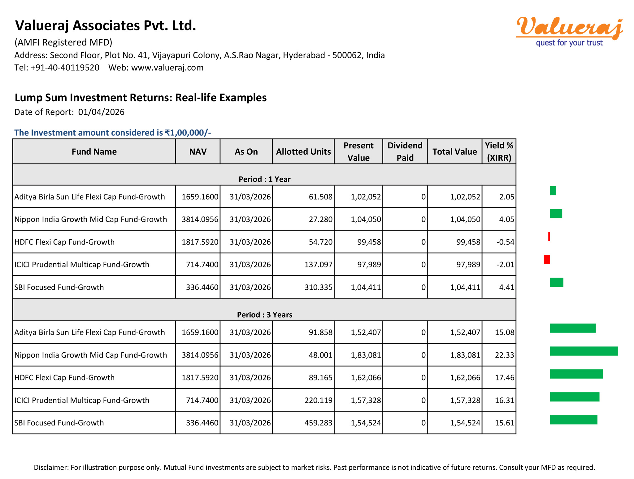 Find below the real-life returns of lump sum investments in various equity mutual funds for different tenures.