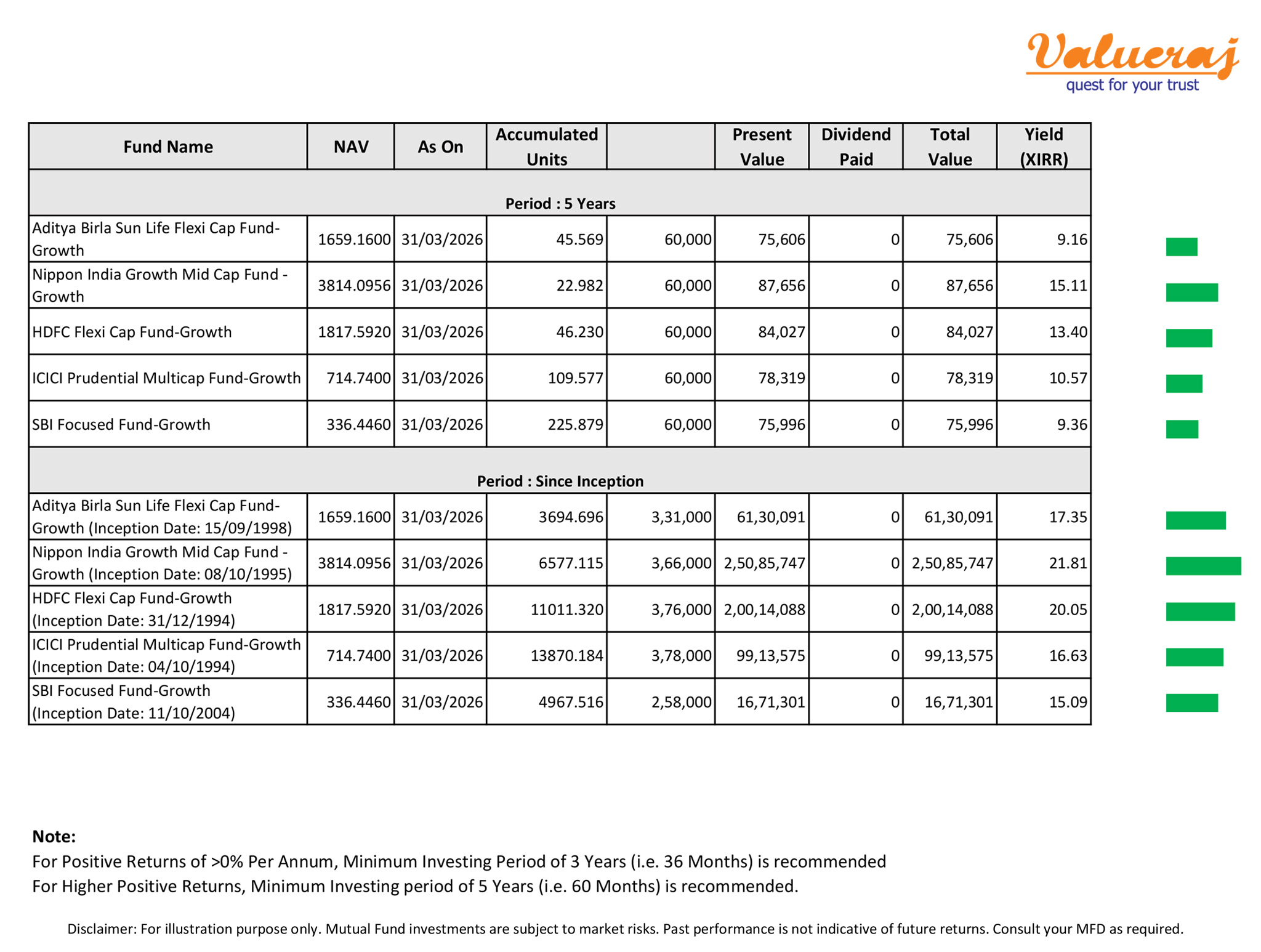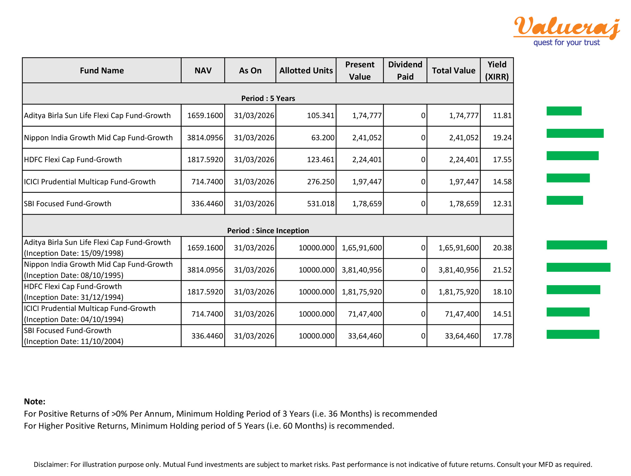 For better understanding, find below our analysis on returns of some stock mutual funds in the past 5 years.