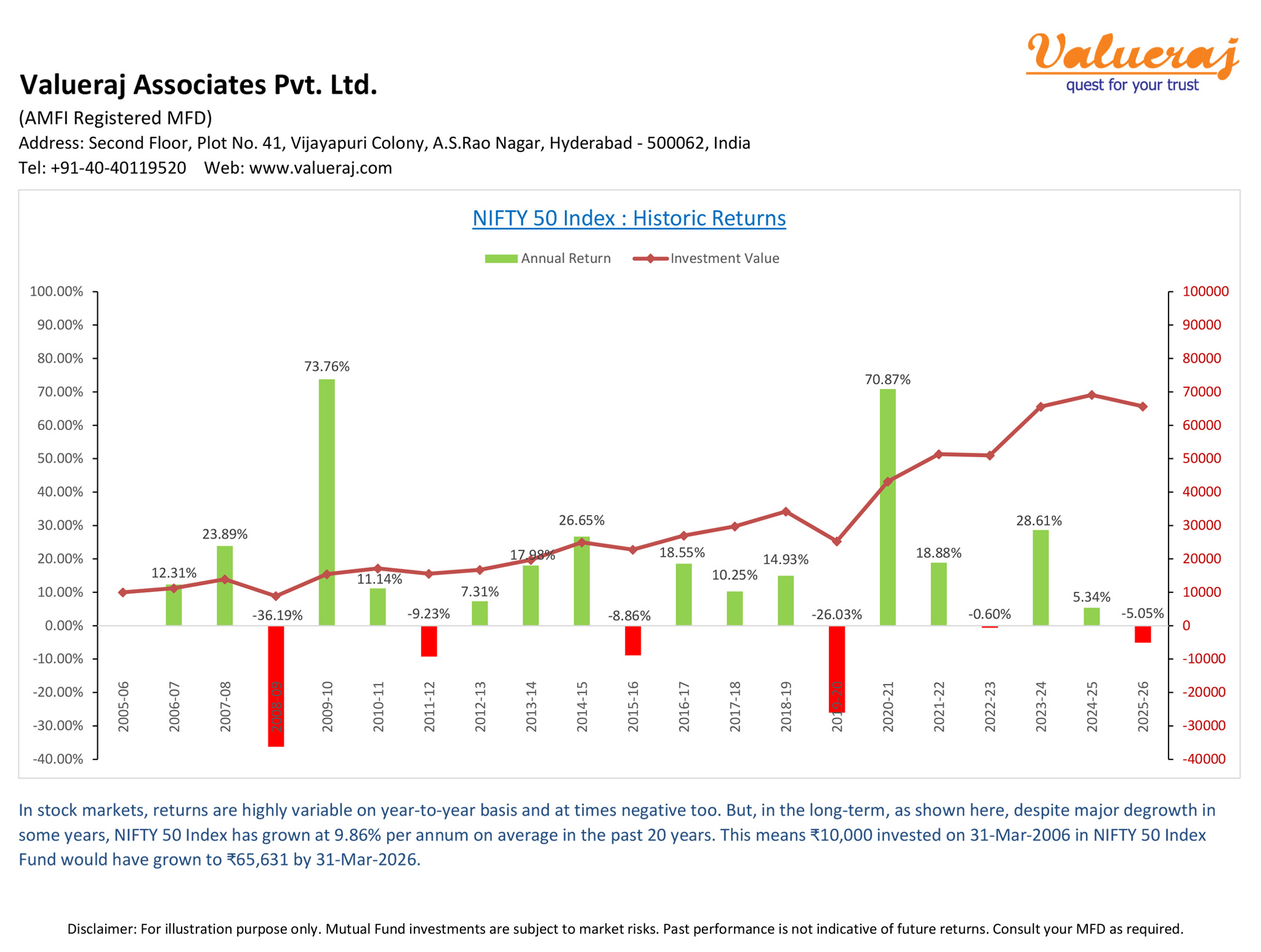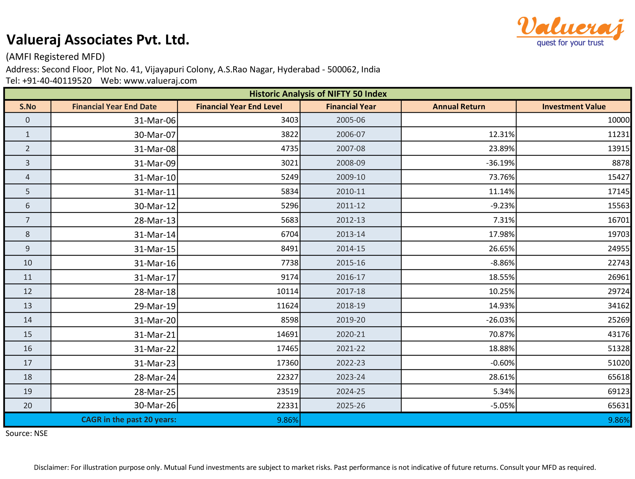 Find below the historic returns of Nifty50 over last 20 years.